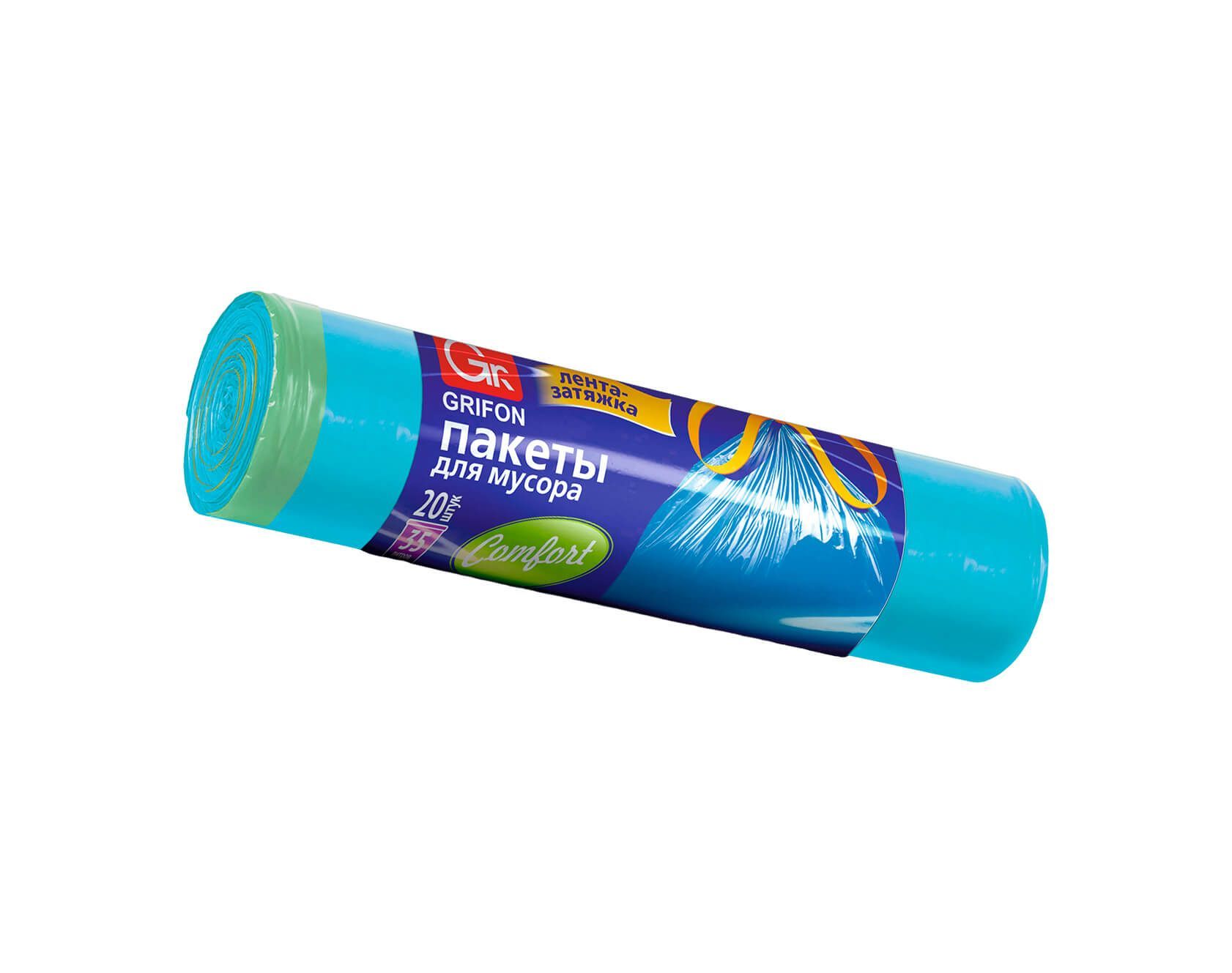 Легко и эффективно поддерживайте чистоту с мешками для мусора GRIFON! В каждом рулоне вы найдете 20 надежных голубых мешков объемом 35 литров каждый, с прочными завязками для удобства использования.